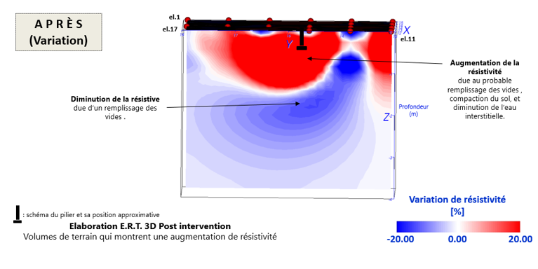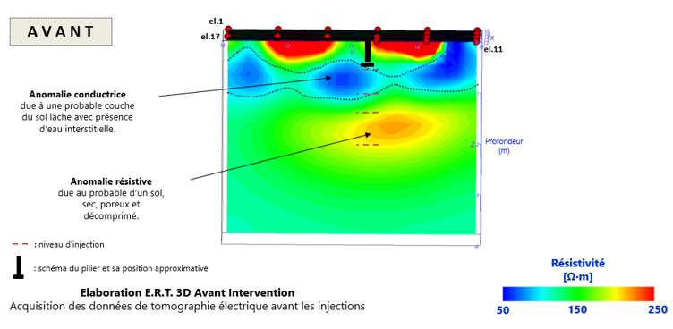 Modèles géoélectriques tridimensionnels du sol sous les fondations (ERT3D) pour la validation de l’intervention
