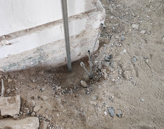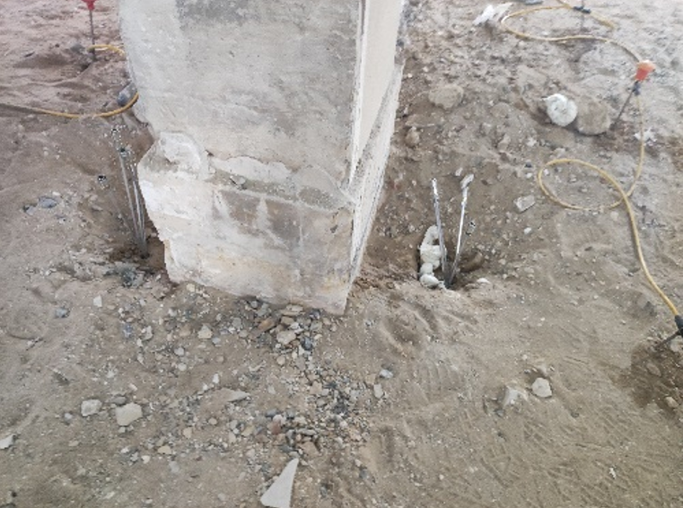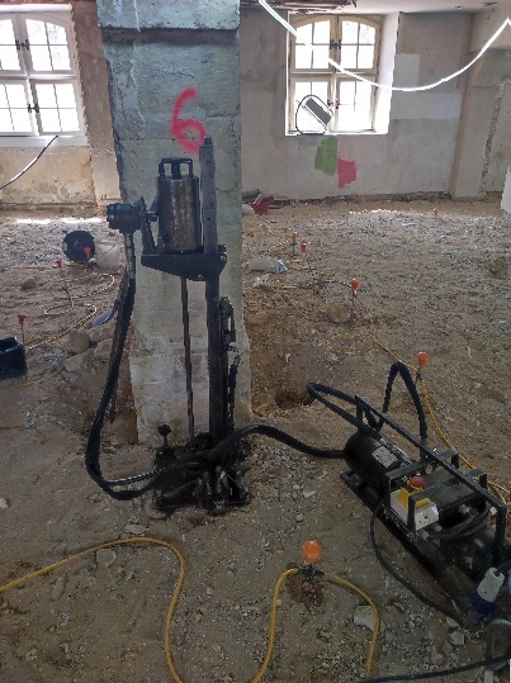 Il s’agit d’un monument historique, l’intervention a concerné le traitement de sol porteur sous une semelle isolée, via 8 tubes d’injection présents dans deux perforations abandonnées dans le sol et insérés sur 4 niveaux de profondeurs.